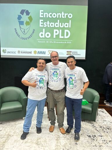 O Encontro Estadual do Programa Penso, Logo Destino (PLD), conduzido pelo Instituto do Meio Ambiente de Santa Catarina (IMA), encerrou a sua programação nesta quarta-feira (26). O dia foi dedicado ao compartilhamento de experiências dos municípios e entidades parceiras e, também, a homenagens, com a entrega do Troféu Formiguinha a pessoas e organizações que fizeram a diferença para o sucesso do programa em 2025.O encontro, sediado na Unoesc de Xanxerê, reuniu cerca de 600 participantes, os quais representaram quase 180 municípios catarinenses. De Três Barras, estiveram representando a cidade, o coordenador do Programa Penso, Logo Destino, Sérgio Castilho e o secretário adjunto do Meio Ambiente, Joilson. O PLD atua na articulação entre as cidades, consórcios intermunicipais, órgãos estaduais e entidades gestoras da logística reversa com o objetivo de conscientizar e envolver os catarinenses no descarte ambientalmente adequado dos resíduos sólidos.A adesão dos municípios e a colaboração de diversas entidades e autarquias governamentais é o que garante a capilaridade e a eficiência das ações do PLD. “Trata-se de uma rede articulada, que chega até a casa das pessoas com informações e orientações sobre o descarte dos resíduos sólidos, especialmente aqueles que integram a cadeia da logística reversa. É um trabalho de formiguinha, que tem resultados expressivos”, explica o coordenador estadual do Penso, Logo Destino e servidor do IMA, Cícero Brasil.