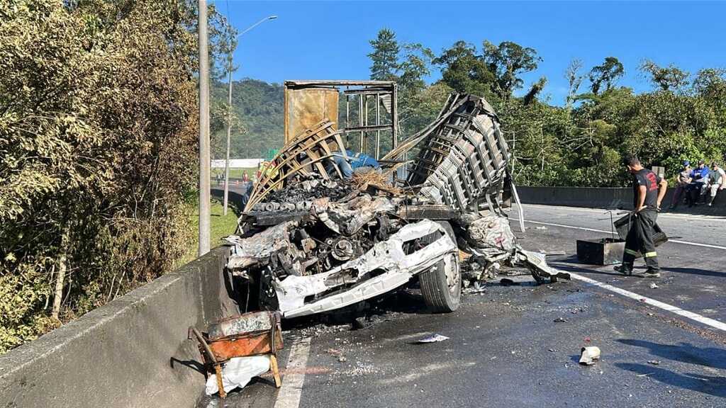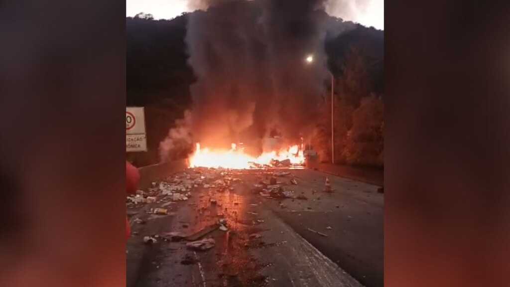Além da van, duas carretas se envolveram na batida. Um dos caminhões pegou fogo e o acidente causou a interdição total da via sentido Sul. Não há previsão para liberação da pista. As filas no local já ultrapassam 20 quilômetros. Segundo a Arteris Litoral Sul, é possível fazer um desvio pela BR-116.