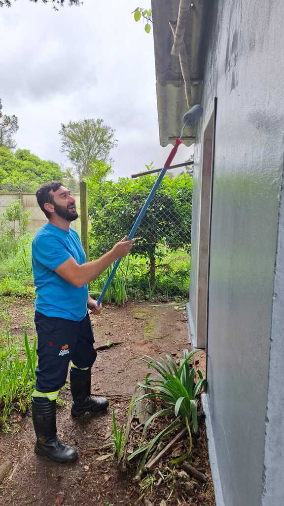 No último sábado, 11 de outubro, cerca de 22 empregados da Celesc participaram de uma ação voluntária na Escola Básica Municipal Alberto Wardenski, em Canoinhas. Durante toda a manhã, os empregados se dedicaram à melhoria da infraestrutura da unidade, realizando serviços de limpeza do pátio com roçadeiras, pintura externa, reparos elétricos e, como ponto alto da ação, a iluminação da quadra de esportes — um sonho aguardado pela comunidade escolar há mais de 10 anos.