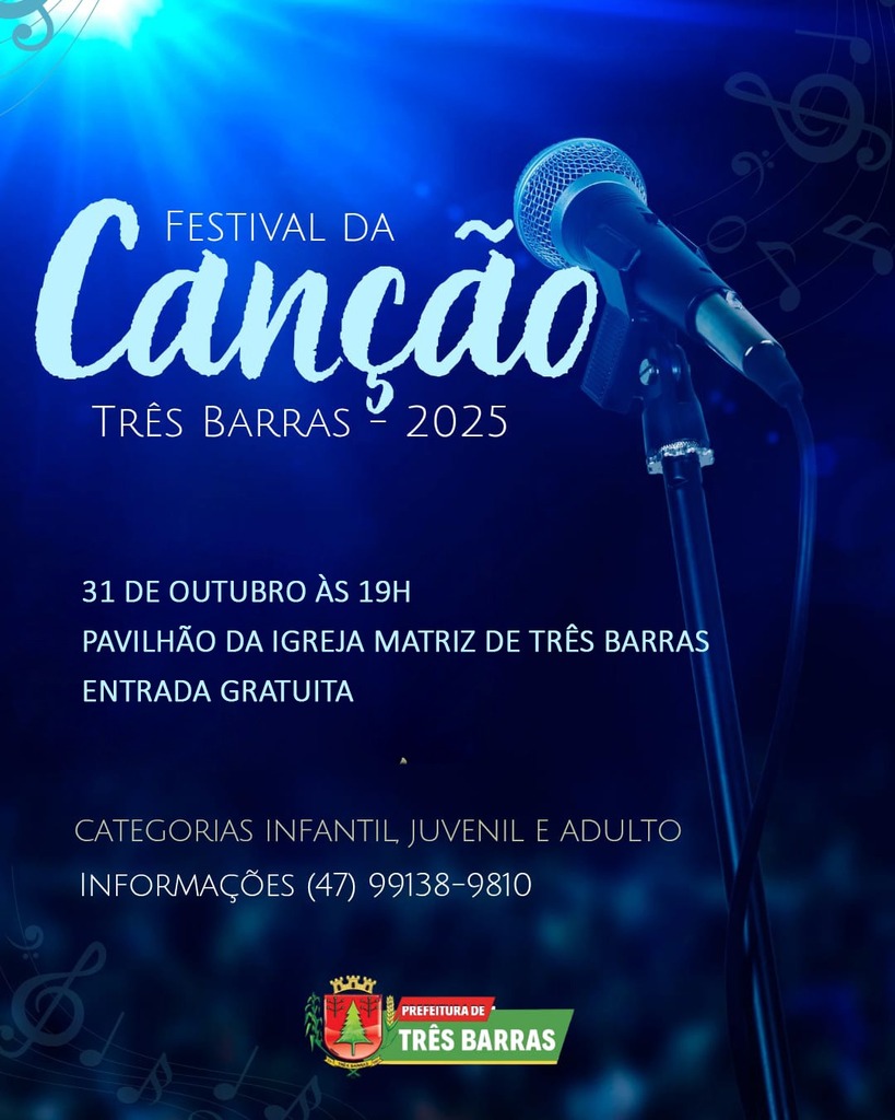 Três Barras realiza Festival da Canção na próxima sexta-feira, 31 de outubro |